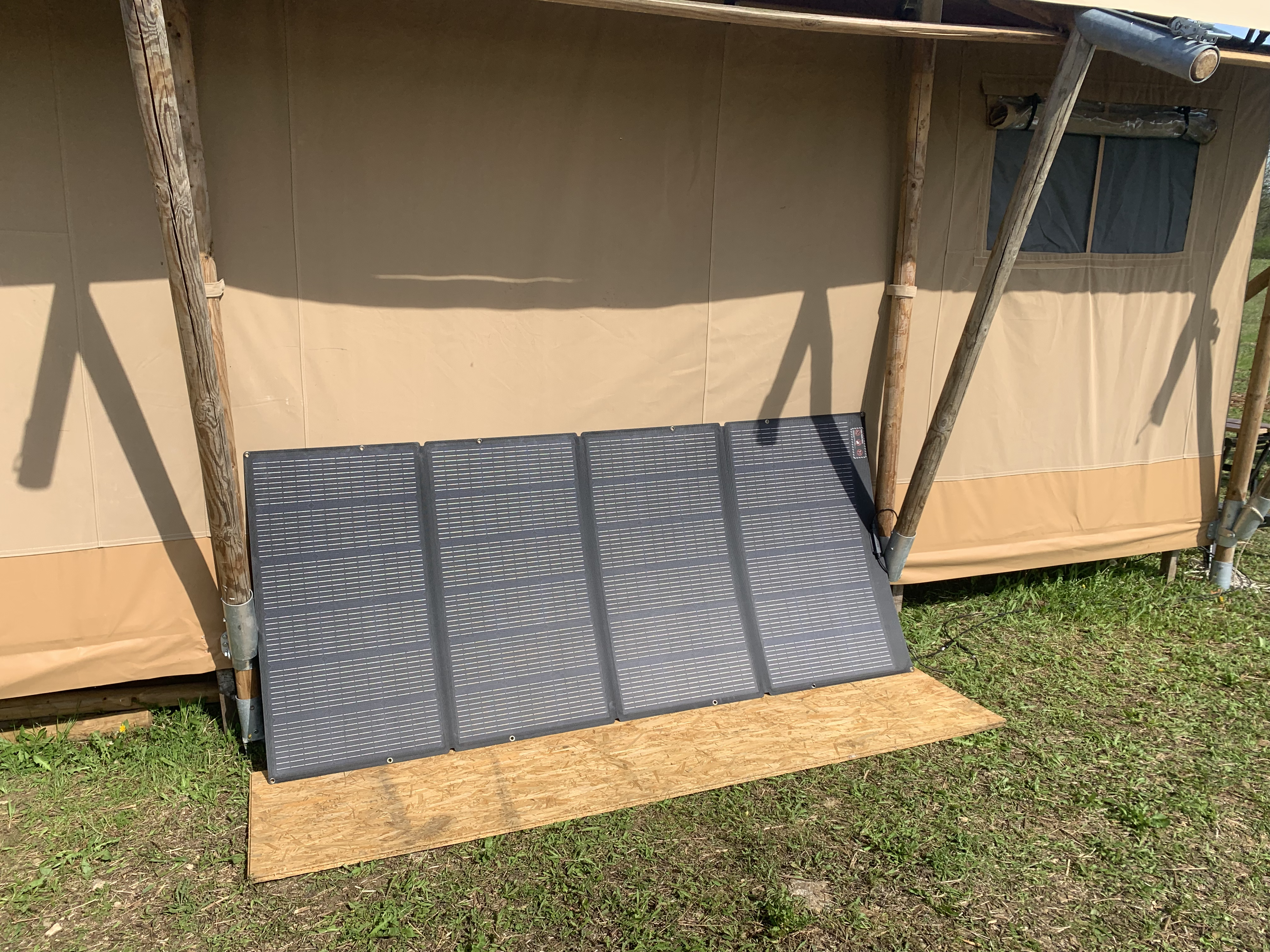 Weken later. Nog steeds geen reactie terwijl ik toch echt al mijn gegevens heb achtergelaten bij zowel de overkoepelende organisatie als de stroom leverancier EDF. Omdat in maart de tent wordt opgeleverd en ik vanaf april ook daadwerkelijk in de tent ga wonen, is elektra wel essentieel. En dus toch de noodgreep: een heus power station met mobiele zonnepanelen. Een flinke massa in de camper, maar ik kan in ieder geval vooruit. Hoewel…had de bouwer geen Franse stekker bij de tent moeten plaatsen, dan werkt het nog niet…gelukkig is dat zo verholpen. En dus hopen op veel zon en smiddags de panelen bijdraaien naar de zon!